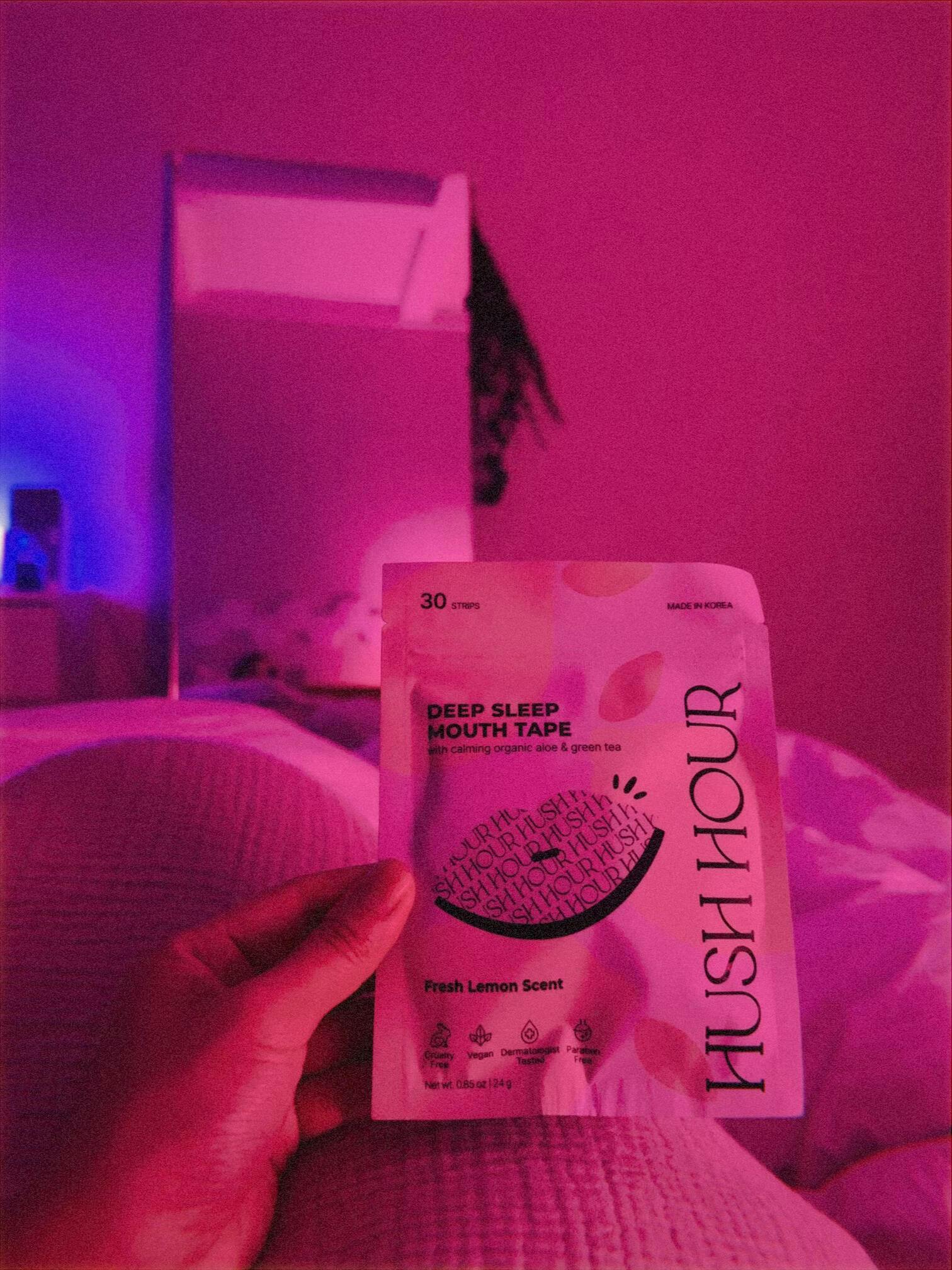 I've used generic mouth tape in the past but never really stuck with the habit. Sometimes it's better to splurge a bit on things that feel luxurious. I absolutely loved Hush Hour!! Love the scent, the packaging, and the effectiveness. I was a bit skeptical at first bc it feels so soft when you put it on but it truly stayed on all night!!